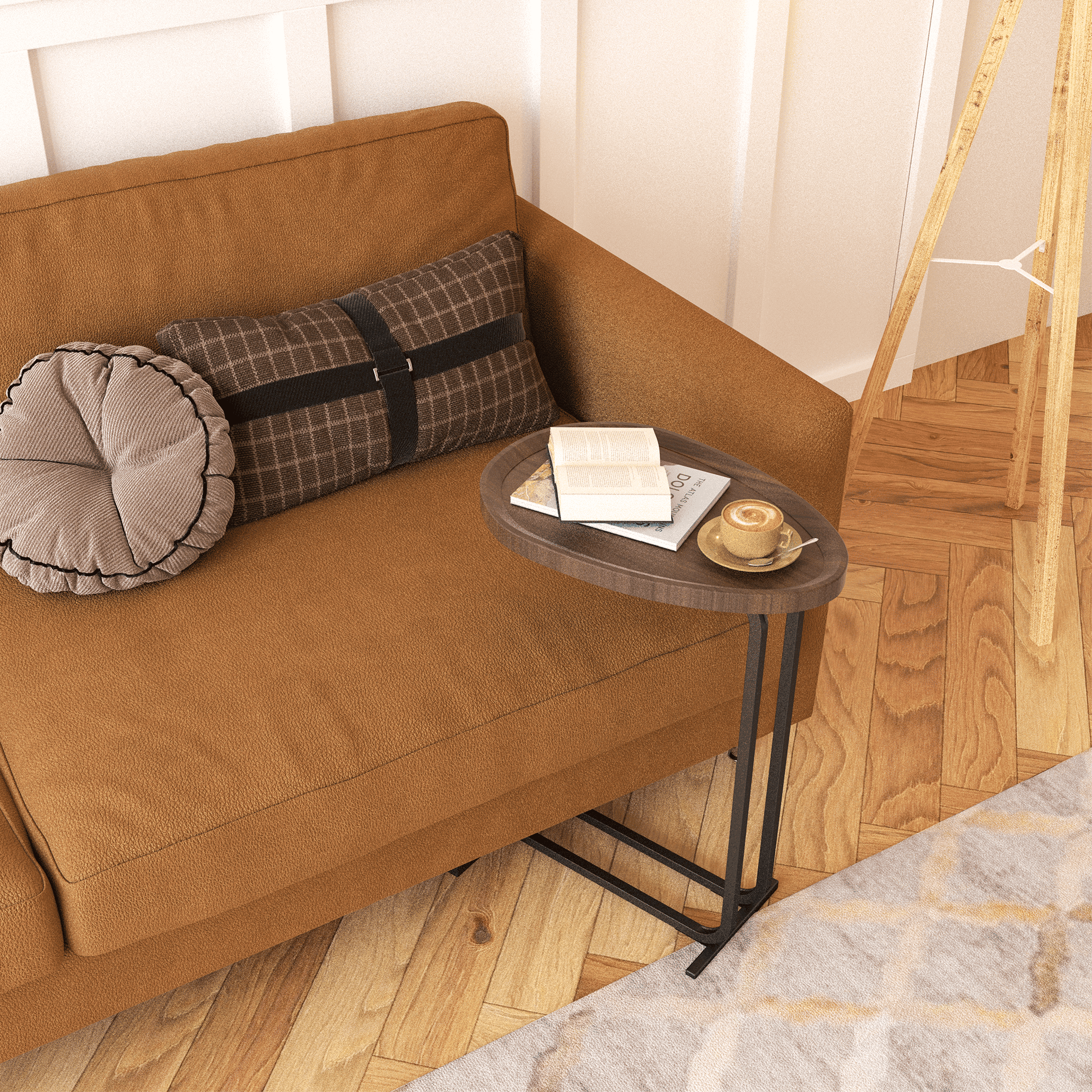 1.C-Shaped Couch Table: The C table can easily slide under the sofa or bed. It's a cool addition to your living room or bedroom, featuring a sleek c-shaped couch table with a classy metal frame
