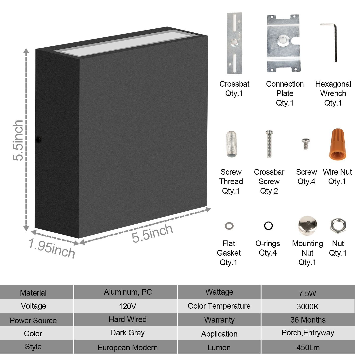 1.Modern design:The outdoor wall light is a modern industrial design style, the internal integration of large LED beads. glows up & down. It will be a special decoration to illuminate your front porch.