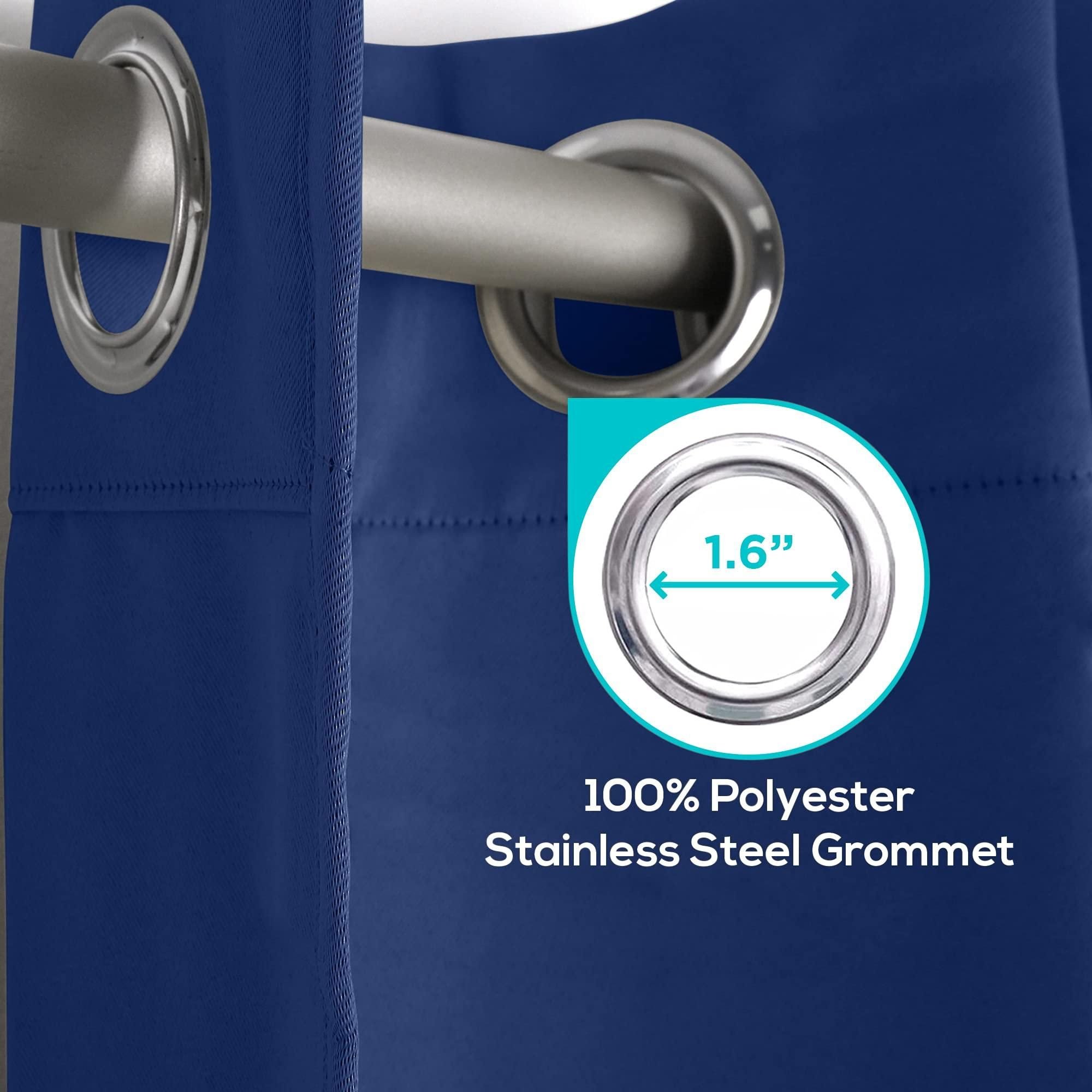 1.what's in the package? a set of 2 navy blackout curtain panels, each panel measures 52 inches the width and 84 inches the length. each curtain panel includes 6 silver metal grommet rings, each grommet inner diameter is 1.6 inch, which is compatible with most rods, and easy slides to install.